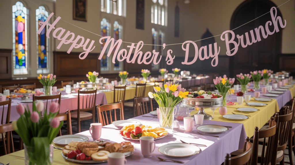 Light finger foods, fruit trays, pastries, and coffee are more than enough. If your church is smaller, a potluck-style brunch works beautifully. For larger groups, consider asking a few women to coordinate specific menu sections so no one person feels overwhelmed.