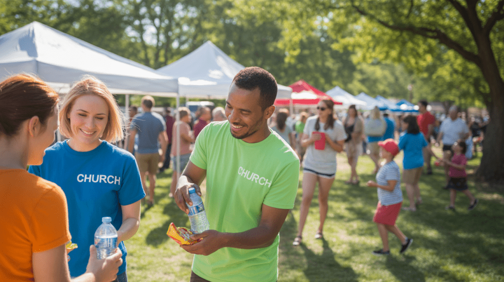 Set up a community appreciation table at a local event, farmers market, ball field, or busy public area. Hand out cold water, packaged snacks, and friendly smiles to those passing by. Include a small sign showing your church name and a message of encouragement. Acts of kindness like this can help people remember your church in a positive light.